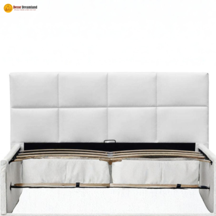 Smooth, easy-lift mechanism offering spacious hidden storage—ideal for bedding, pillows, and seasonal items.