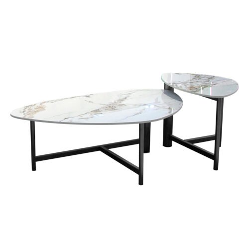 M127 – Modern Italian Design Coffee Table Set – Special Shaped Slate Top with Iron Base for Living Room