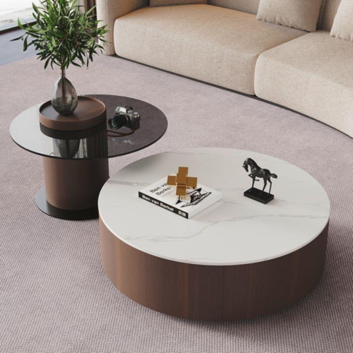 🪨 Dual Top Design – Large table with glass surface, smaller with rock slab marble finish.