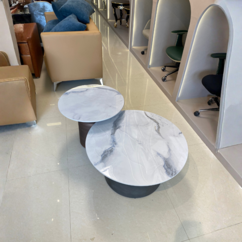 🪑 Model: Y07 – Elegant pair of round glass & marble-effect tables.