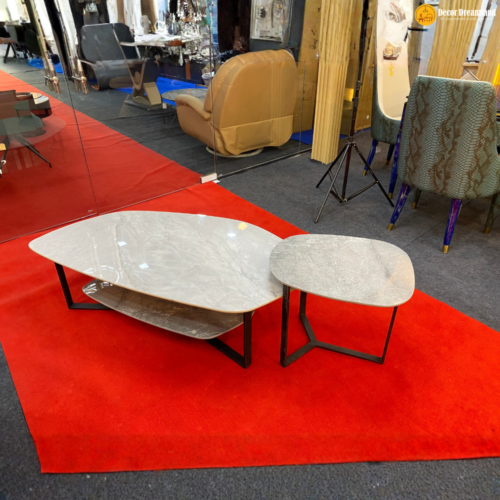 M127 – Modern Italian Design Coffee Table Set – Special Shaped Slate Top with Iron Base for Living Room