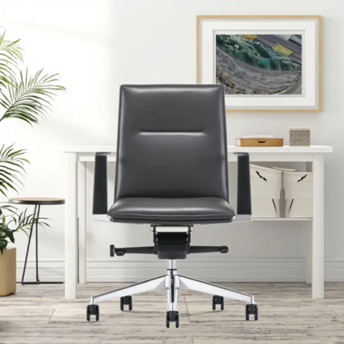 💼 Executive Style: Sleek mid-back design with a luxury chrome-finished back frame