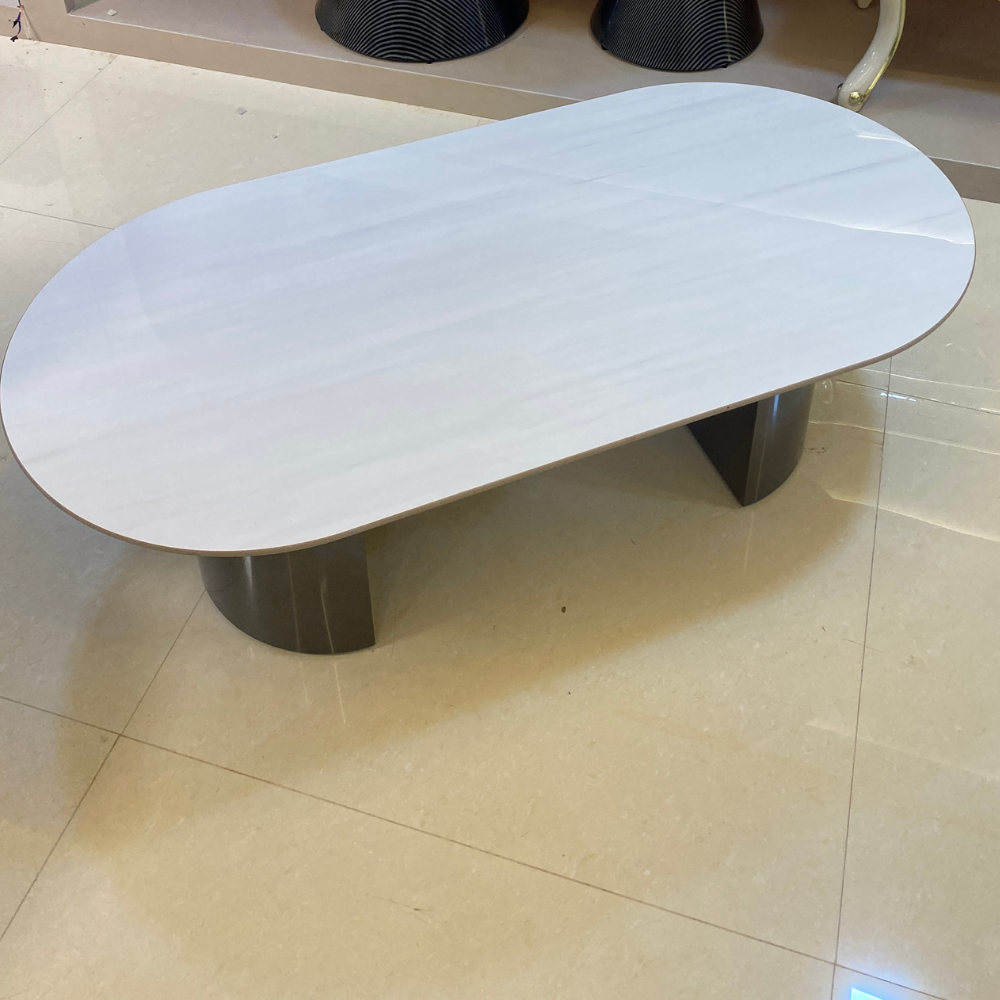 M132 – 54″ Modern Extendable Coffee Table – White Sintered Stone Top with 3 Stainless Steel Legs & Free-Form Design