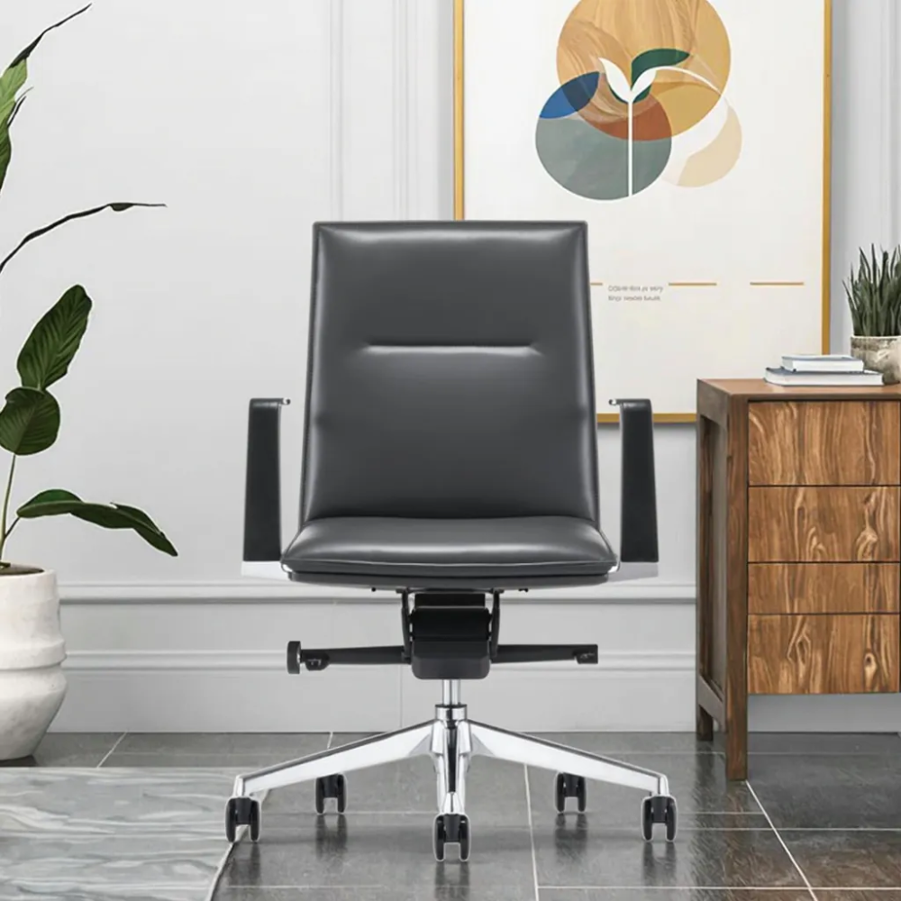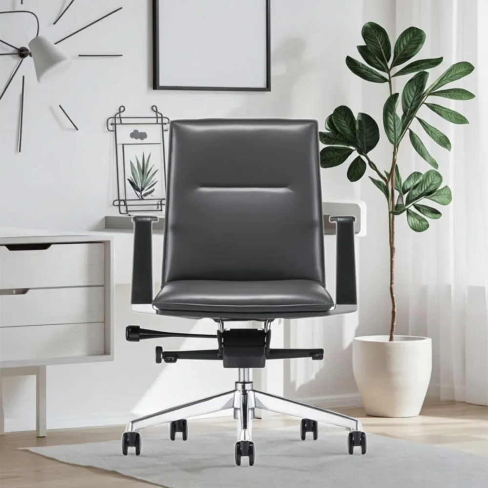 💼 Executive Style: Sleek mid-back design with a luxury chrome-finished back frame