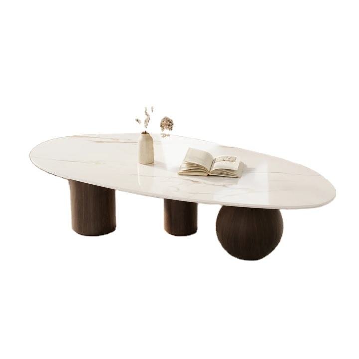 P02 β Modern Minimalist Oval Coffee Table β 130Γ72Γ40 White Rock Slab Marble Top with Luxury Iron Base for Living Room