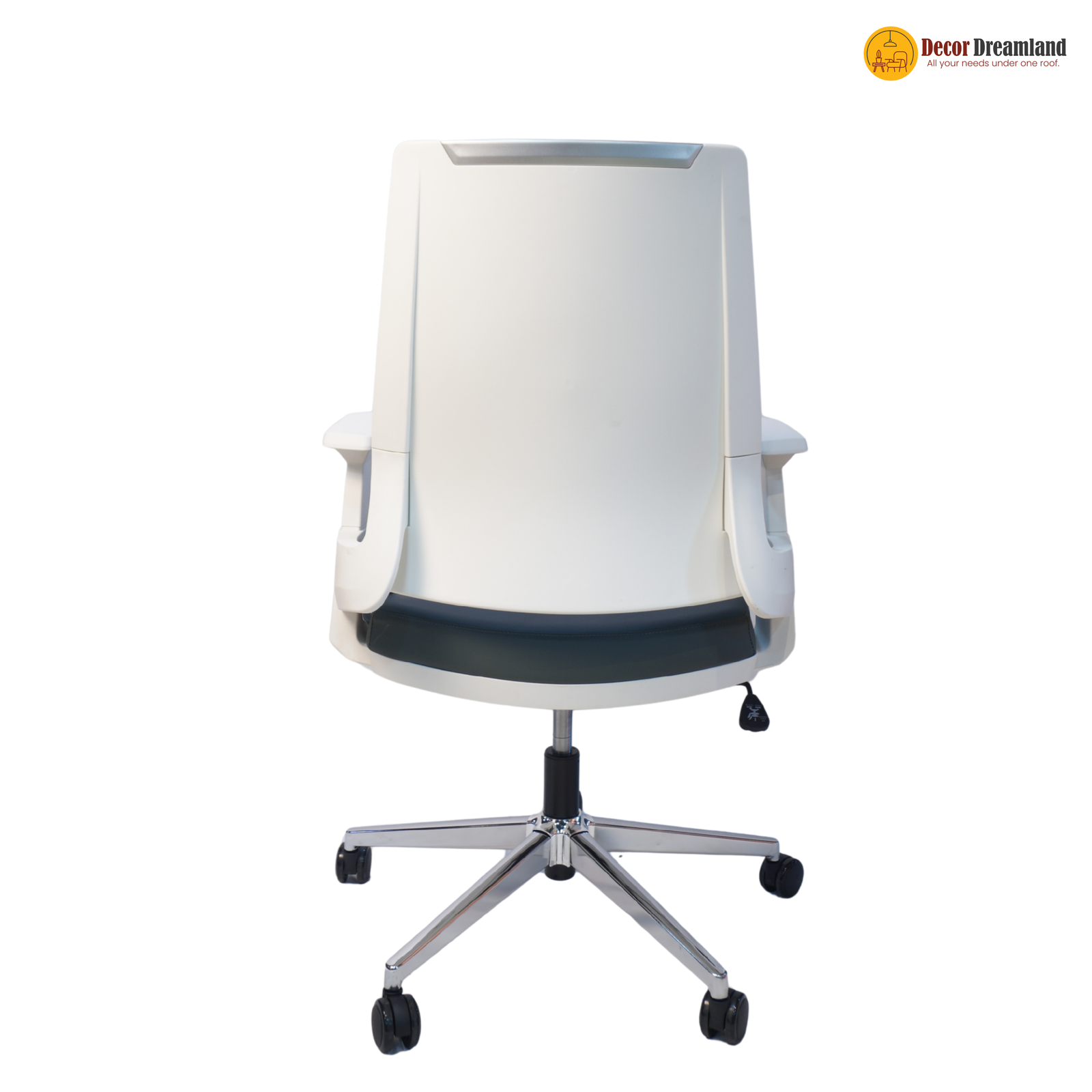 Built with a 350mm chrome base and 60mm PU noiseless casters, this chair ensures stability, smooth movement, and long-lasting performance—making it an excellent choice for offices, study rooms, meeting cabins, and co-working spaces.