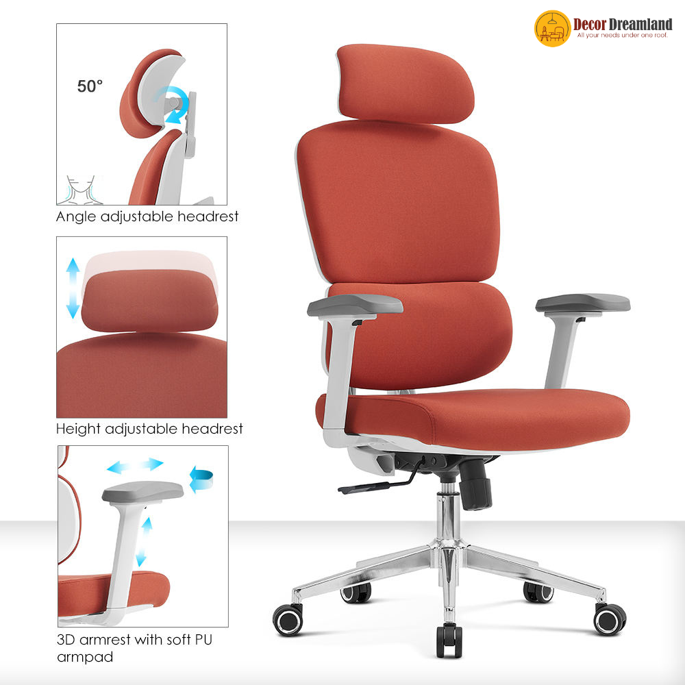 Ergonomic Executive Office Chair V04 – Adjustable Mesh Back with 3D Armrests, Class-4 Gas Lift & Nylon Casters – Modern Orange Design